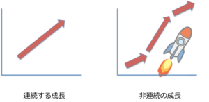 企業でも個人でも急成長する場合は後者の非連続的成長があります